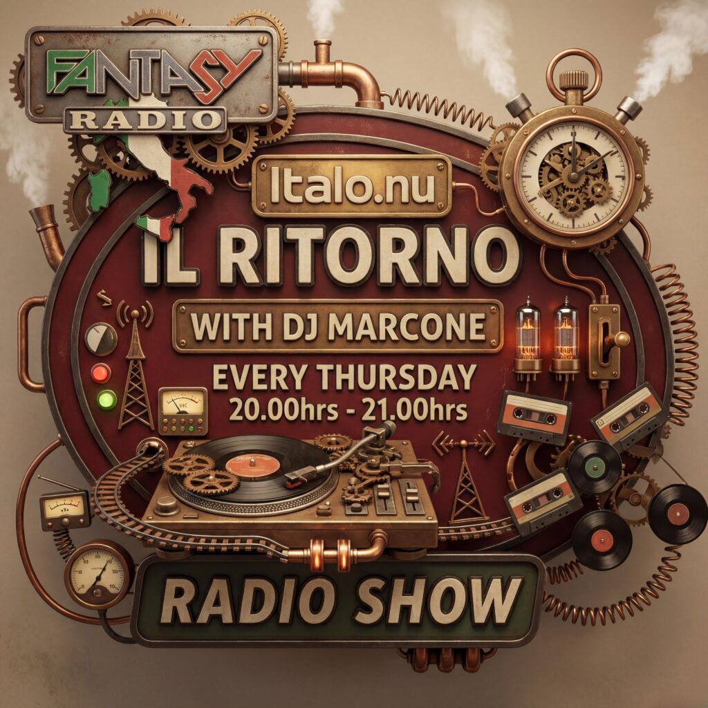 Il Ritorno with DJ MarcOne Post author:dj-ab Post published:February 5, 2026 Post category:Italo Post comments:0 Comments Tonight a brand new Il Ritorno with DJ MarcOne 7:00 PM On the beats 8:00 PM DJ MarcOne He takes you from the eighties to the nineties and the zeros Tuuuuune in on www.italo.nu Tags: #zyxrecords, AMD Records, Danceclassics, dancemania, dark synth, dj marcone, euro-dance, Euro-Disco, eurobeat, eurodance, fantasy, Fantasy Radio, flashback records, Hi-NRG, high energy;italo dance ; spacesynth, hinrg, I Venti d'Azzurro Records, Il Ritorno, Italian, italo, italo dance, italo dance ; spacesynth, italo disco 80s, italo disco party, italo disco radio, italo mix, italo party, italo party disco 80s, italo queen, Italo-Disco, Italo-Pop, italoboek, italodance, ItaloDisco, italy, iventi, lusso records, new generation italo, space, spacesynth, Synth-pop, Synthpop, wollebrand, wollefik, zyx, zyx italo, zyxmusic Read more articles Previous PostFantasy Wednesday Next PostFriday Evening Mix Evening You Might Also Like Various – Italo Holiday Vol. 6 by Beach Club Records December 11, 2016 Stefan Burne on Fantasy Radio May 19, 2020 Fantasy Radio – Weekly Schedule January 28, 2026 Leave a Reply Cancel replyCommentEnter your name or username to comment Enter your email address to comment Enter your website URL (optional) Δ